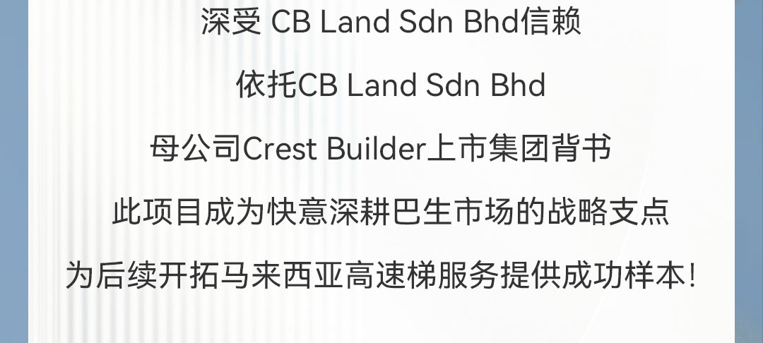 中標 | 快意高速電梯貫通馬來西亞CB Land綜合體